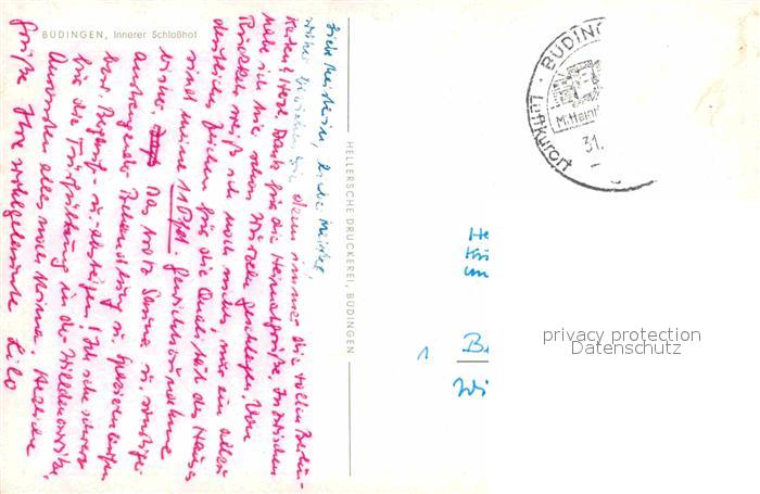 72683970 alte Postkarte Buedingen Hessen Innerer Schlosshof postalisch gelaufen Erhaltung siehe scans [WerneD78] KatCode: 11110006440004