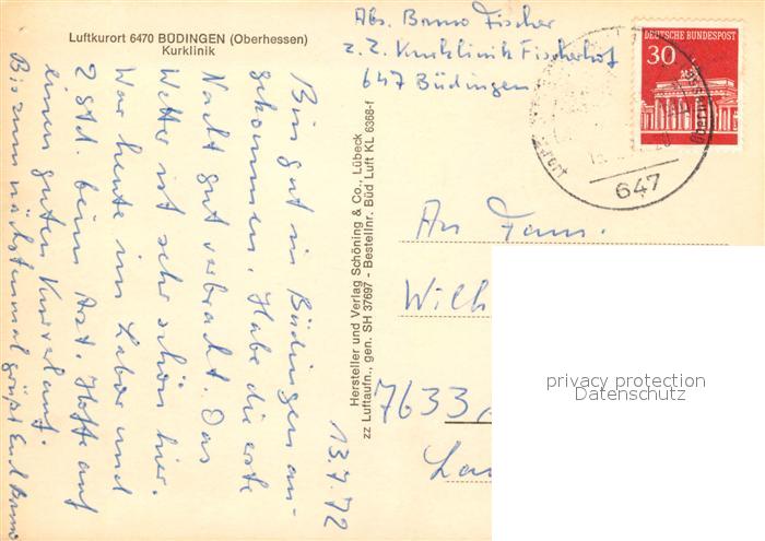 73088997 alte Postkarte Buedingen Hessen Kurklinik Fliegeraufnahme postalisch gelaufen Erhaltung siehe scans [PaolaD17] KatCode: 11110006440004