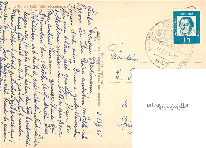 73029712 alte Postkarte Buedingen Hessen Lohsteg mit Wehrtuermen postalisch gelaufen Erhaltung siehe scans [WerneD78] KatCode: 11110006440004