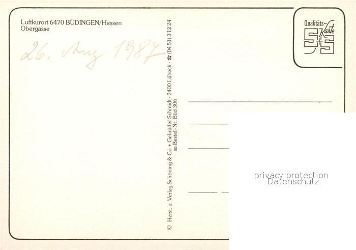 73208333 Buedingen Hessen Obergasse postalisch nicht gelaufen Erhaltung siehe scans [NatalD47] KatCode: 11110006440004