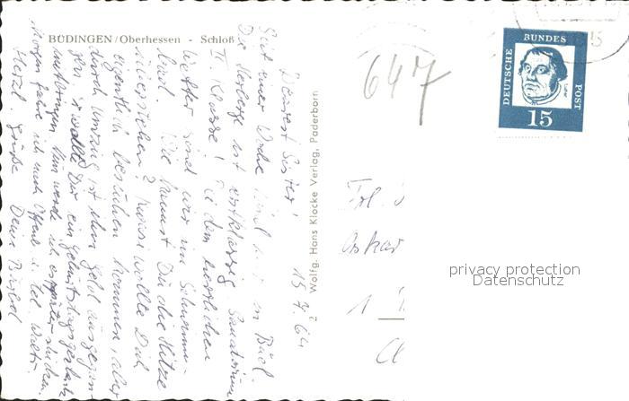 72122156 alte Postkarte Buedingen Hessen Schloss postalisch gelaufen Erhaltung siehe scans KatCode: 11110006440004