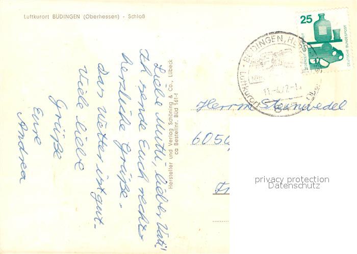 73201586 alte Postkarte Buedingen Hessen Schloss postalisch gelaufen Erhaltung siehe scans [KathaD81] KatCode: 11110006440004