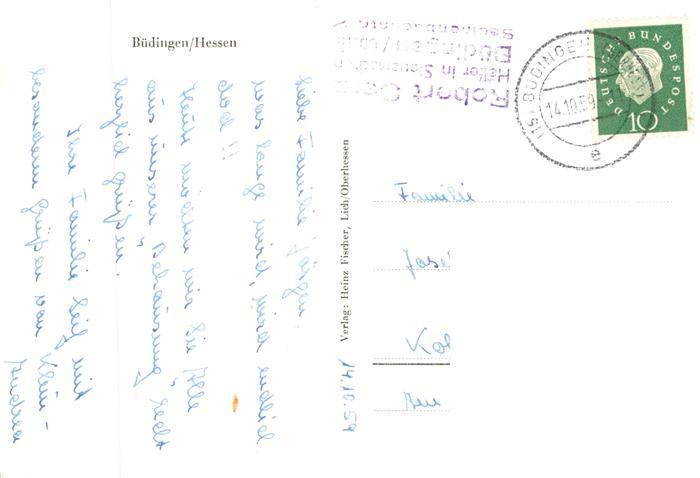 73888854 alte Postkarte Buedingen Hessen Schloss Panorama postalisch gelaufen Erhaltung siehe scans [FriedD77] KatCode: 11110006440004