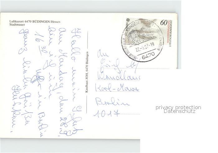 72255153 alte Postkarte Buedingen Hessen Stadtmauer postalisch gelaufen Erhaltung siehe scans KatCode: 11110006440004