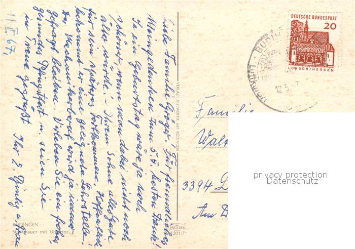 73609018 alte Postkarte Buedingen Hessen Stadtmauer mit Untertor postalisch gelaufen Erhaltung siehe scans [WerneD78] KatCode: 11110006440004