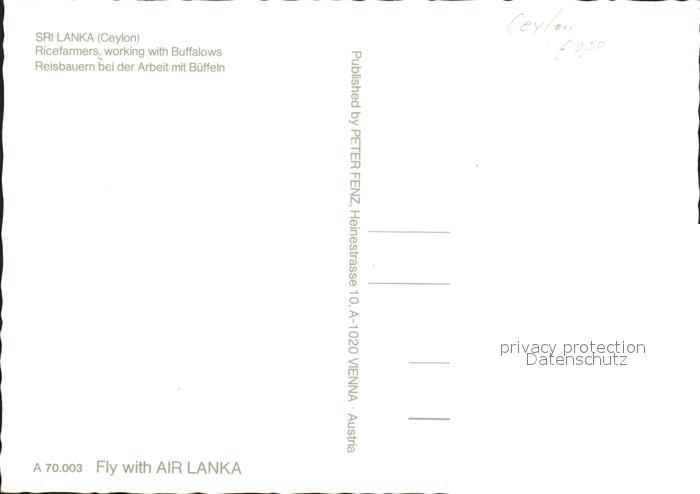 Bueffel Sri Lanka Reisbauern Landwirtschaft Ricefarmers postalisch nicht gelaufen Erhaltung siehe scans