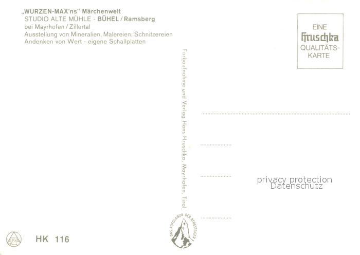 73162272 Buehel Zillertal Wurzen Max’ens Alte Muehle Maerchenwelt Ausstellung von Mineralien Malereien Schnitzereien postalisch nicht gelaufen Erhaltung siehe scans [FriedD77] KatCode: 11390335070916