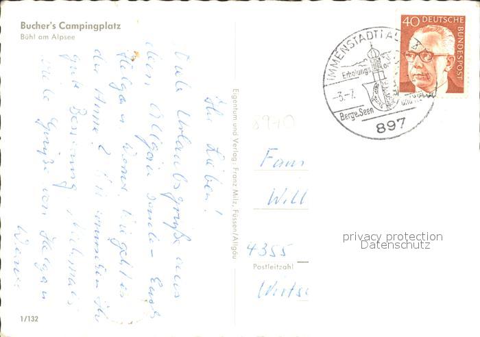 72235882 alte Postkarte Buehl Alpsee Buchers Campingplatz postalisch gelaufen Erhaltung siehe scans KatCode: 11110009780124