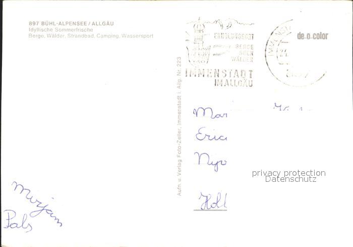 72241946 alte Postkarte Buehl Alpsee Camping Segelboot Wassersport postalisch gelaufen Erhaltung siehe scans KatCode: 11110009780124