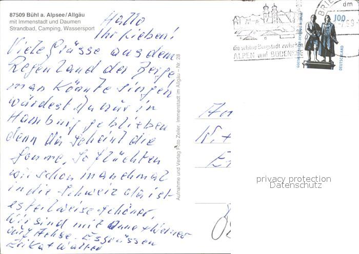 72533951 alte Postkarte Buehl Alpsee mit Immenstadt und Daumen postalisch gelaufen Erhaltung siehe scans [WerneD78 kt116box] KatCode: 11110009780124