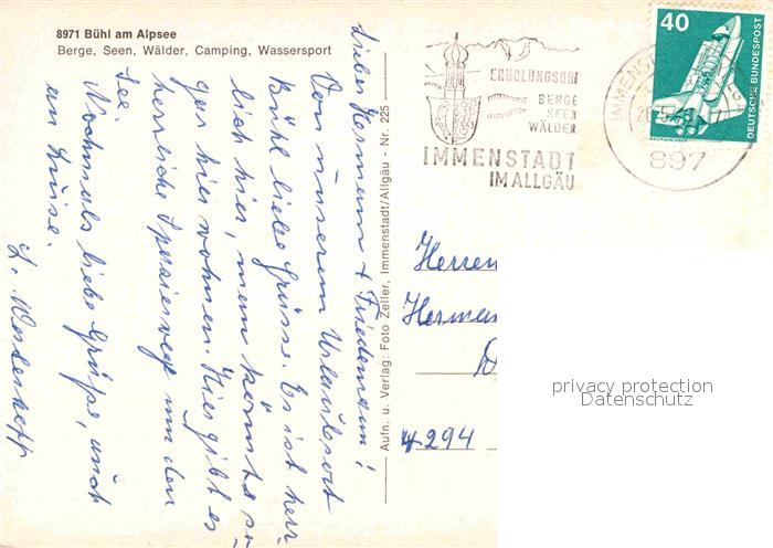 72655690 alte Postkarte Buehl Alpsee Panorama postalisch gelaufen Erhaltung siehe scans [AndreD76] KatCode: 11110009780124