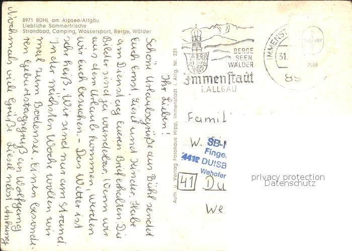 72527415 alte Postkarte Buehl Alpsee Panorama postalisch gelaufen Erhaltung siehe scans KatCode: 11110009780124