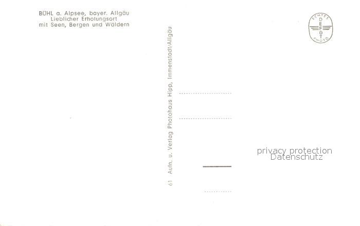 73610466 Buehl Alpsee postalisch nicht gelaufen Erhaltung siehe scans [LiesaD40] KatCode: 11110009780124
