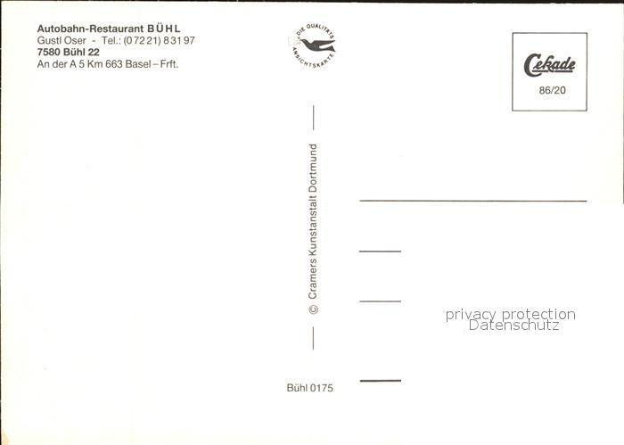 72545217 Buehl Baden Autobahn Restaurant postalisch nicht gelaufen Erhaltung siehe scans [KathaD79 kv011box] KatCode: 11110008216007