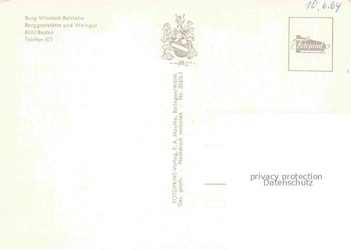 74043612 Buehl Baden Burg-Windeck-Betriebe Berggaststaette und Weingut postalisch nicht gelaufen Erhaltung siehe scans [FriedD77] KatCode: 11110008216007