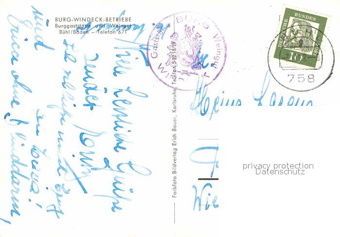 72767978 alte Postkarte Buehl Baden Burg Windeck Burggaststaette und Weingut postalisch gelaufen Erhaltung siehe scans [WerneD78] KatCode: 11110008216007