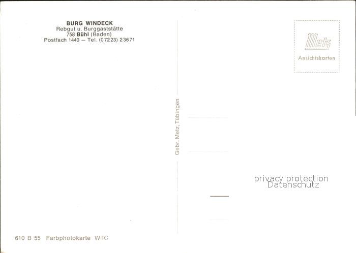 72425848 Buehl Baden Burg Windeck Rebgut Burggaststaette postalisch nicht gelaufen Erhaltung siehe scans KatCode: 11110008216007