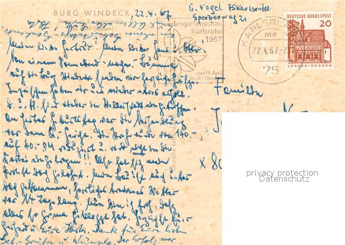 73636124 alte Postkarte Buehl Baden Burg Windeck Rebgut und Berggaststaette Fliegeraufnahme postalisch gelaufen Erhaltung siehe scans [FriedD77] KatCode: 11110008216007