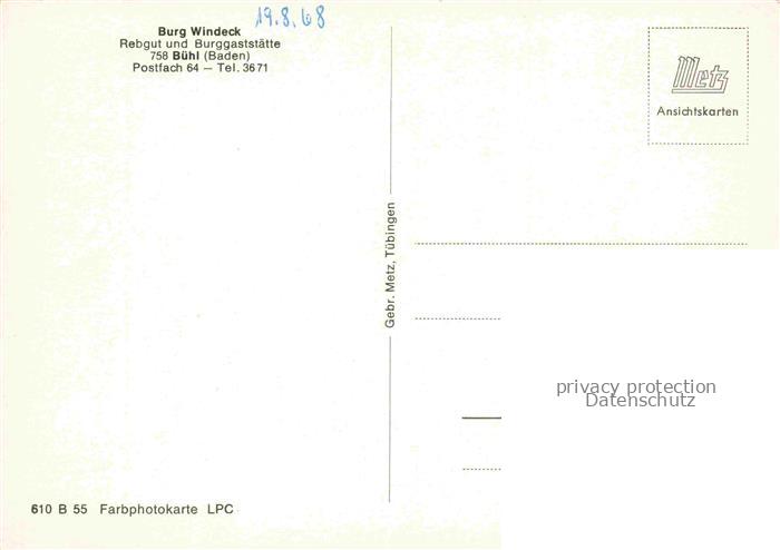 74132251 Buehl Baden Burg Windeck Rebgut und Burggaststaette postalisch nicht gelaufen Erhaltung siehe scans [WerneD78] KatCode: 11110008216007