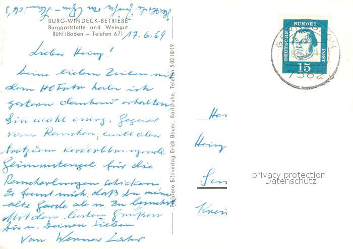 73570110 alte Postkarte Buehl Baden Burggaststaette und Weingut Restaurant Burg Windeck postalisch gelaufen Erhaltung siehe scans [FriedD77] KatCode: 11110008216007