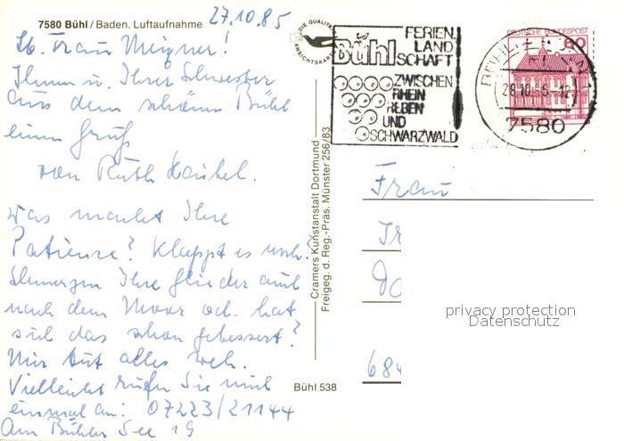 73124047 alte Postkarte Buehl Baden Fliegeraufnahme postalisch gelaufen Erhaltung siehe scans [NatalD47] KatCode: 11110008216007