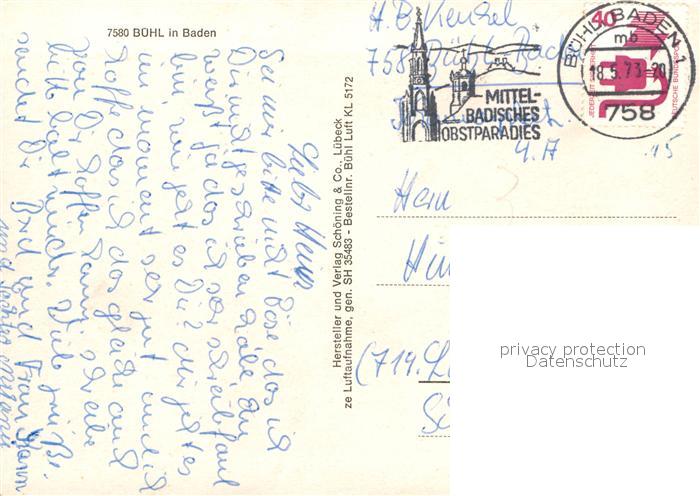 73033413 alte Postkarte Buehl Baden Fliegeraufnahme postalisch gelaufen Erhaltung siehe scans [PaolaD17] KatCode: 11110008216007