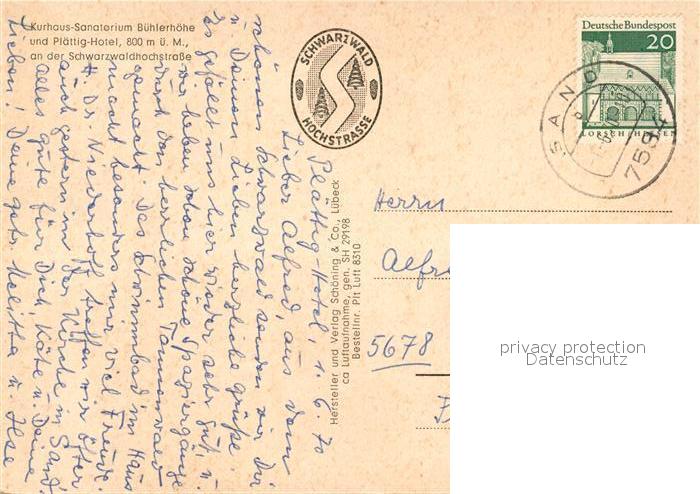 73094038 alte Postkarte Buehl Baden Fliegeraufnahme Kurhaus Sanatorium Buehlerhoehe Plaettig Hotel postalisch gelaufen Erhaltung siehe scans [KathaD81] KatCode: 11110008216007