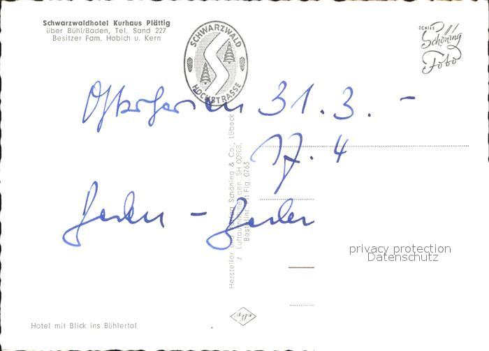 72585565 Buehl Baden Fliegeraufnahme Schwarzwaldhotel Kurhaus Plaettig postalisch nicht gelaufen Erhaltung siehe scans [AndreD76] KatCode: 11110008216007