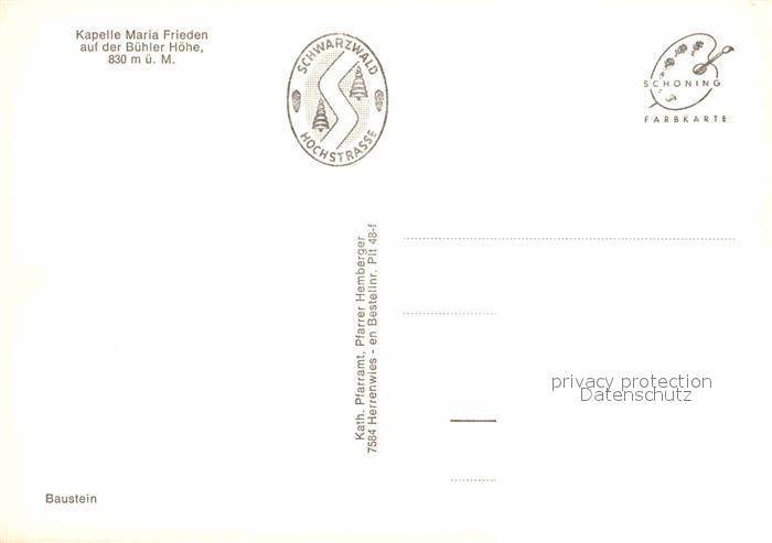 72906778 Buehl Baden Kapelle Maria Frieden postalisch nicht gelaufen Erhaltung siehe scans [NatalD47] KatCode: 11110008216007