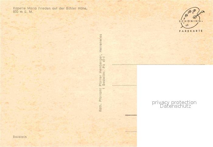 72885828 Buehl Baden Kapelle Maria Frieden auf der Buehler Hoehe postalisch nicht gelaufen Erhaltung siehe scans [FriedD77] KatCode: 11110008216007