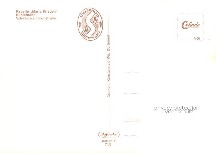 73003092 Buehl Baden Kapelle Maria Frieden Buehlerhoehe postalisch nicht gelaufen Erhaltung siehe scans [WerneD78] KatCode: 11110008216007
