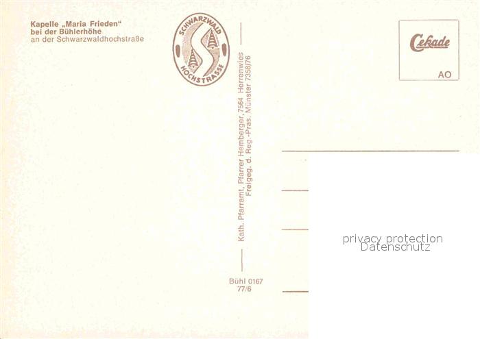72896950 Buehl Baden Kapelle Maria Frieden Buehlerhoehe postalisch nicht gelaufen Erhaltung siehe scans [KathaD81] KatCode: 11110008216007