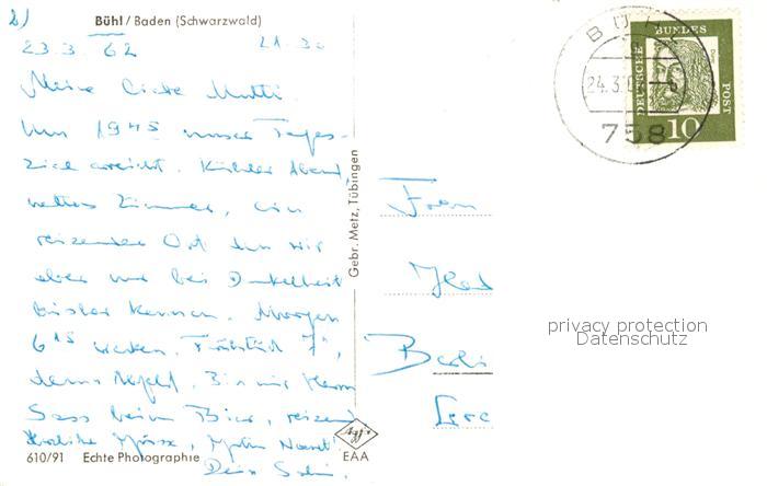 43347596 alte Postkarte Buehl Baden Kirche Panorama postalisch gelaufen Erhaltung siehe scans [KathaD81] KatCode: 11110008216007
