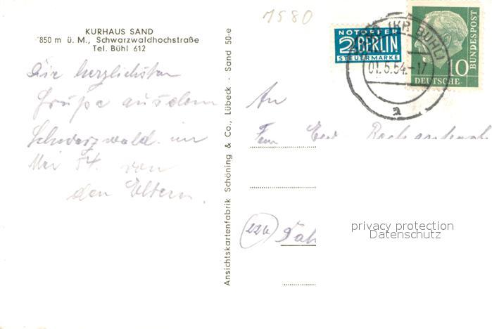 73645599 alte Postkarte Buehl Baden Kurhaus Sand postalisch gelaufen Erhaltung siehe scans [WerneD78] KatCode: 11110008216007