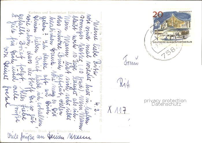 72032090 alte Postkarte Buehl Baden Kurhaus und Sanatorium Buehlerhoehe postalisch gelaufen Erhaltung siehe scans KatCode: 11110008216007