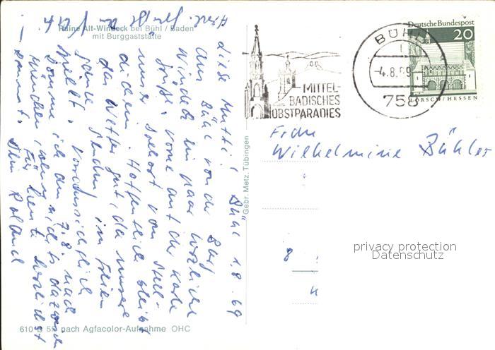 72241538 alte Postkarte Buehl Baden Ruine Alt Windeck mit Burggaststaette postalisch gelaufen Erhaltung siehe scans KatCode: 11110008216007