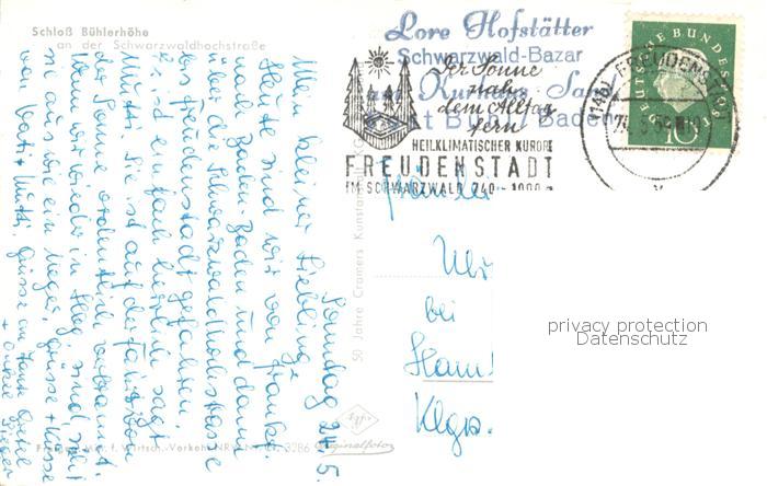 73764779 alte Postkarte Buehl Baden Schloss Buehlerhoehe an der Schwarzwaldhochstrasse postalisch gelaufen Fliegeraufnahme Erhaltung siehe scans [FriedD77] KatCode: 11110008216007