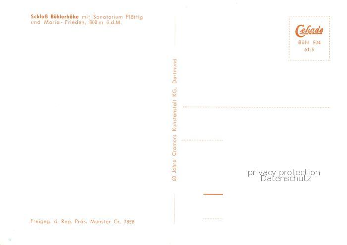 Buehl Baden Schloss Buehlerhoehe mit Sanatorium Plaettig und Maria Frieden Flieg