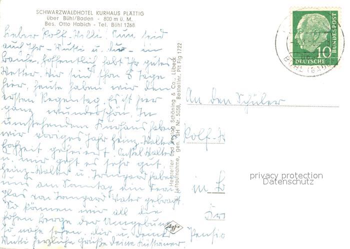 73334707 alte Postkarte Buehl Baden Schwarzwaldhotel Kurhaus Plaettig im Schwarzwald Fliegeraufnahme postalisch gelaufen Erhaltung siehe scans [FriedD77] KatCode: 11110008216007