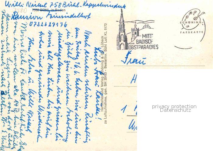 72872365 alte Postkarte Buehl Baden Stadtpanorama Fliegeraufnahme postalisch gelaufen Erhaltung siehe scans [FriedD77] KatCode: 11110008216007