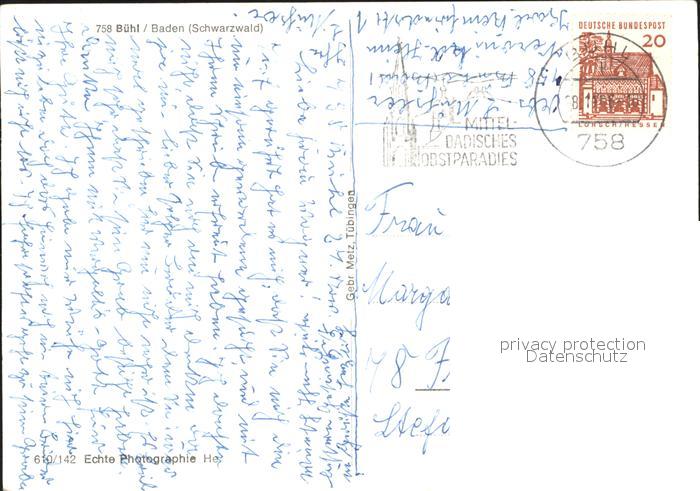 71832331 alte Postkarte Buehl Baden Teilansicht Kirche postalisch gelaufen Erhaltung siehe scans KatCode: 11110008216007