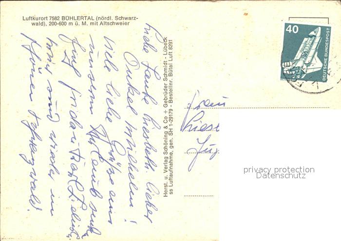 72072037 alte Postkarte Buehlertal Altschweier Fliegeraufnahme postalisch gelaufen Erhaltung siehe scans KatCode: 11110008216008