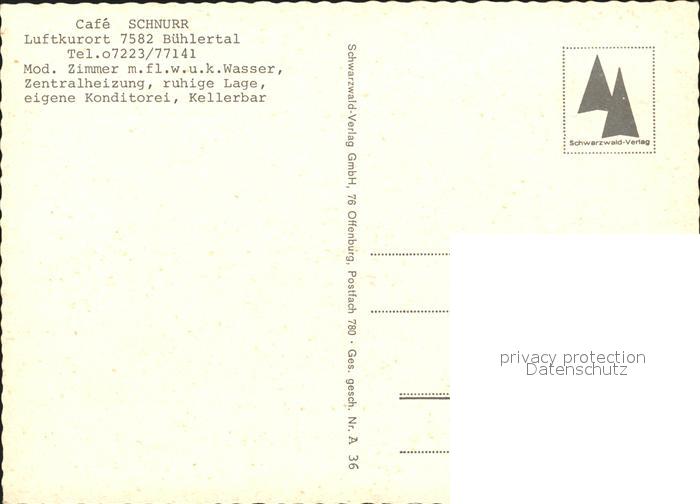 72308518 Buehlertal Cafe Schnurr postalisch nicht gelaufen Erhaltung siehe scans KatCode: 11110008216008