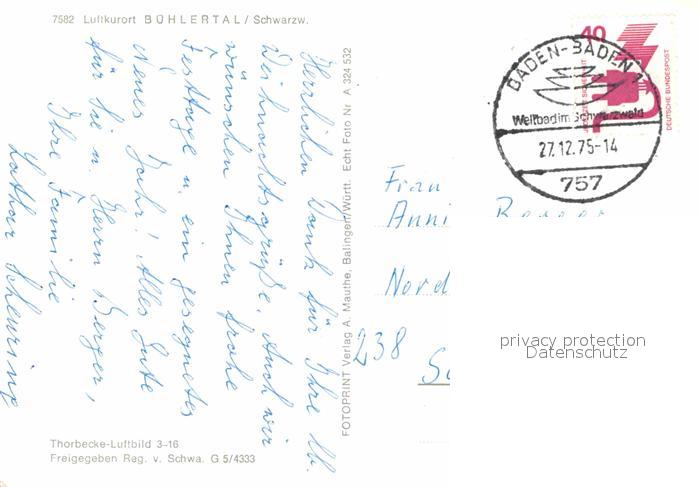 72791192 alte Postkarte Buehlertal Fliegeraufnahme postalisch gelaufen Erhaltung siehe scans [NatalD47] KatCode: 11110008216008