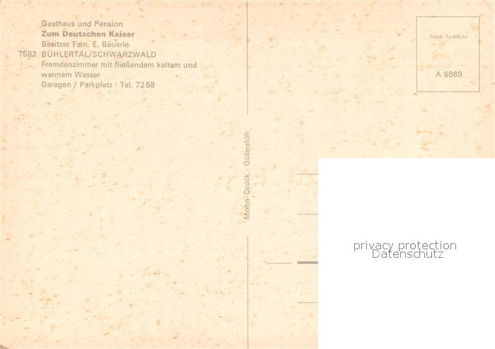 73644310 Buehlertal Gasthaus Pension Zum Deutschen Kaiser postalisch nicht gelaufen Erhaltung siehe scans [FriedD77] KatCode: 11110008216008