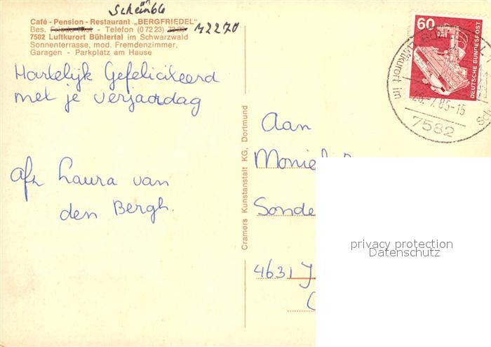 72932441 alte Postkarte Buehlertal Hotel Restaurant Bergfriedel postalisch gelaufen Erhaltung siehe scans [WerneD78] KatCode: 11110008216008