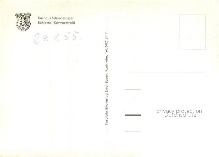 73785668 Buehlertal Kurhaus Schindelpeter postalisch nicht gelaufen Erhaltung siehe scans [WerneD78] KatCode: 11110008216008
