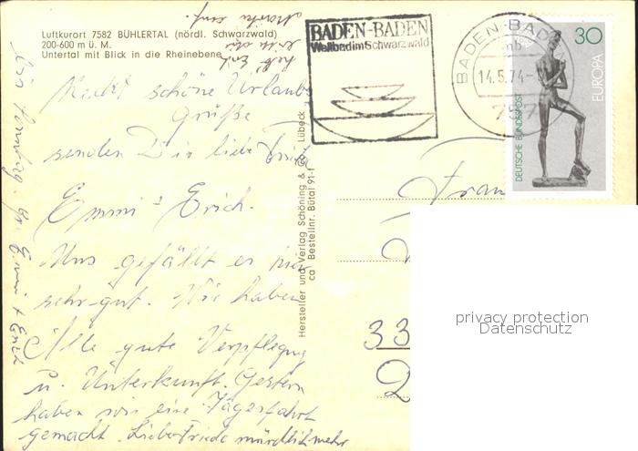 72030475 alte Postkarte Buehlertal Untertal Rheinebene postalisch gelaufen Erhaltung siehe scans KatCode: 11110008216008