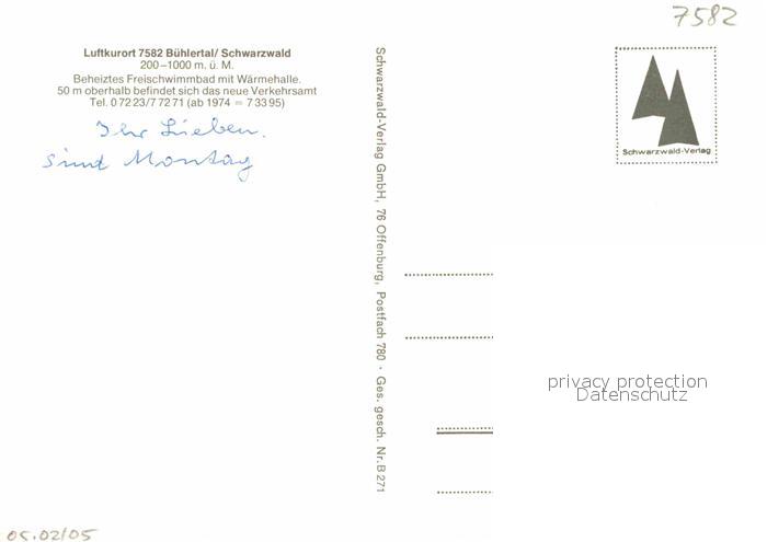 72901954 Buehlertal Verkehrsamt postalisch nicht gelaufen Erhaltung siehe scans [WerneD78] KatCode: 11110008216008
