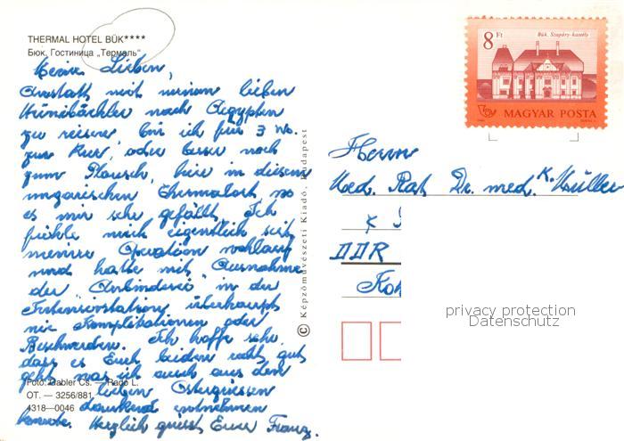 old postcard Buek Buekfuerdoe Bad Thermal Hotel Buek Zimmer Gastraum Schwimmbad Foyer postalisch gelaufen Erhaltung siehe scans [FriedD77]